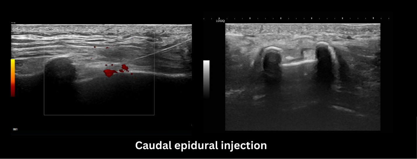 ภาพแสดงการฉีดสารละลายเข้าไปที่โพรงไขสันหลังภายใต้การใช้อัลตราซาวด์นำทาง